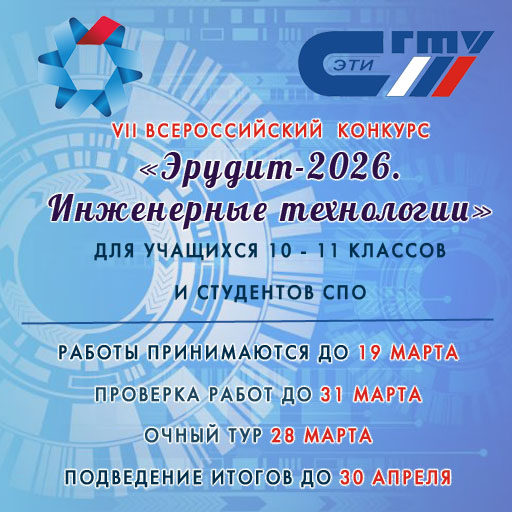 ПРИГЛАШАЕМ ВАС ПРИНЯТЬ УЧАСТИЕ В VII ВСЕРОССИЙСКОМ КОНКУРСЕ «ЭРУДИТ-2026. ИНЖЕНЕРНЫЕ ТЕХНОЛОГИИ»