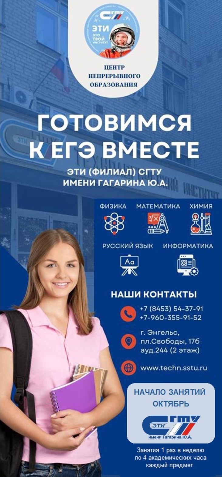 ЭНГЕЛЬССКИЙ ТЕХНОЛОГИЧЕСКИЙ ИНСТИТУТ (ФИЛИАЛ) СГТУ ИМЕНИ ГАГАРИНА Ю.А. ПРИГЛАШАЕТ ВЫПУСКНИКОВ НА ПОДГОТОВИТЕЛЬНЫЕ КУРСЫ