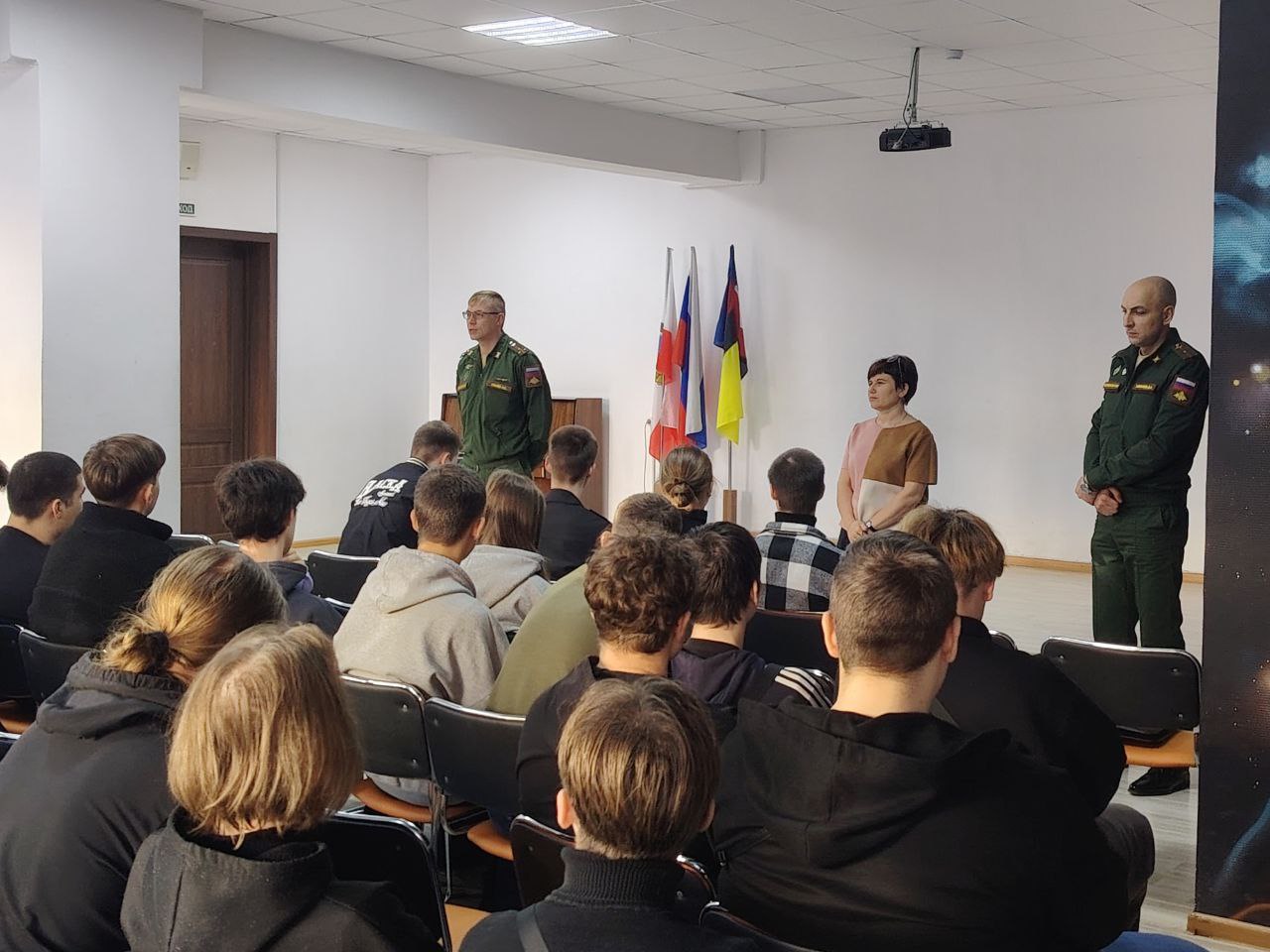 На площадке Энгельсского технологического института (филиал) СГТУ имени Гагарина Ю.А. состоялась встреча студентов выпускных курсов, обучающихся по программам среднего профессионального образования, с представителями Военного комиссариата города Энгельса, Ровенского и Энгельсского районов Саратовской области. Мероприятие было организовано с целью информирования будущих специалистов об условиях и порядке поступления в высшие учебные заведения Министерства обороны Российской Федерации.