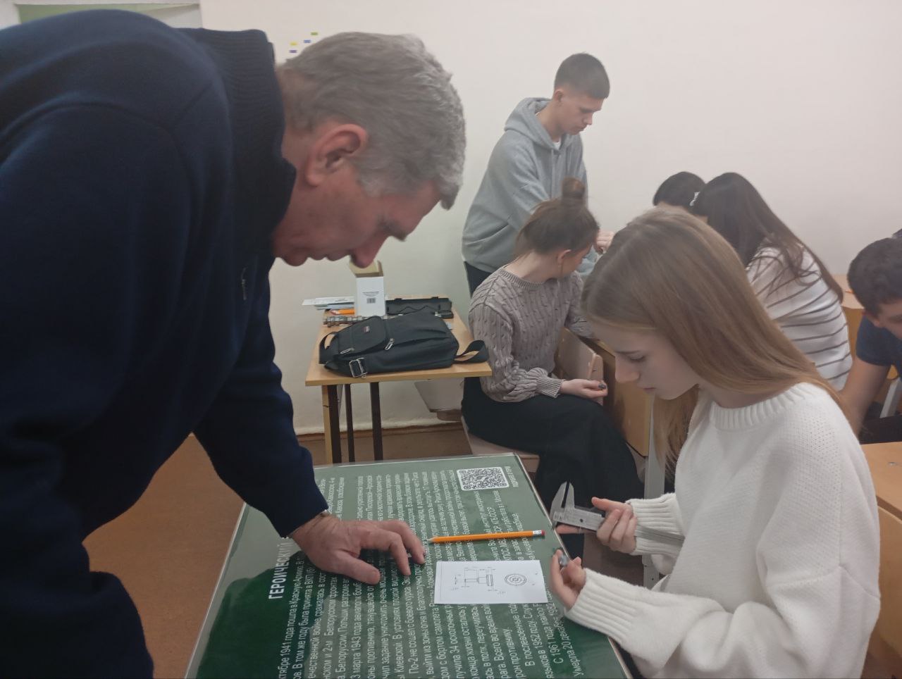 Целью мастер-класса было познакомить школьников с одним из главных инструментов в машиностроении и приборостроении – штангенциркулем. Ребята не только узнали теорию, но и на практике освоили принципы его работы: как правильно снимать показания с нониусной шкалы; измерять наружные и внутренние размеры деталей; определять глубину пазов и выступов; сопоставлять реальные размеры деталей с их изображением на инженерных чертежах. Встреча прошла в живой и динамичной атмосфере. Школьники активно задавали вопросы и с большим интересом выполняли предложенные задания.