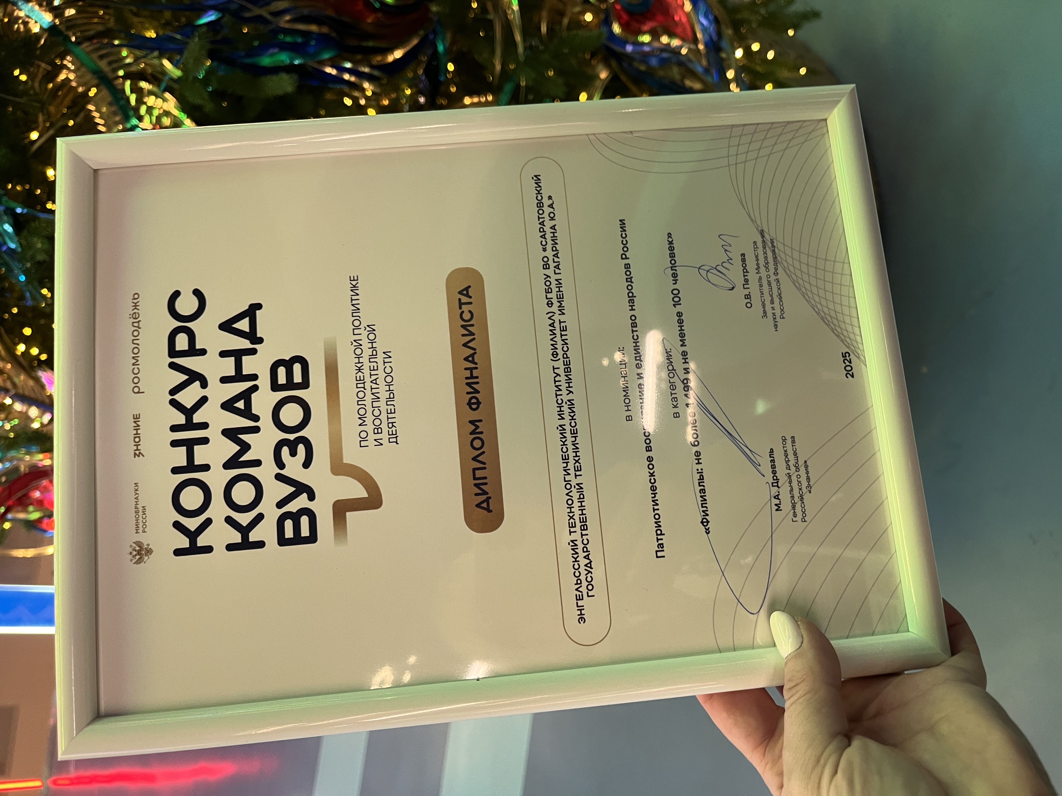 В рамках конгресса прошла церемония награждения Конкурса команд вузов по молодежной политике и воспитательной деятельности. Наш вуз вошел в первую пятерку филиалов-финалистов в номинации «Патриотическое воспитание и единство народов России».