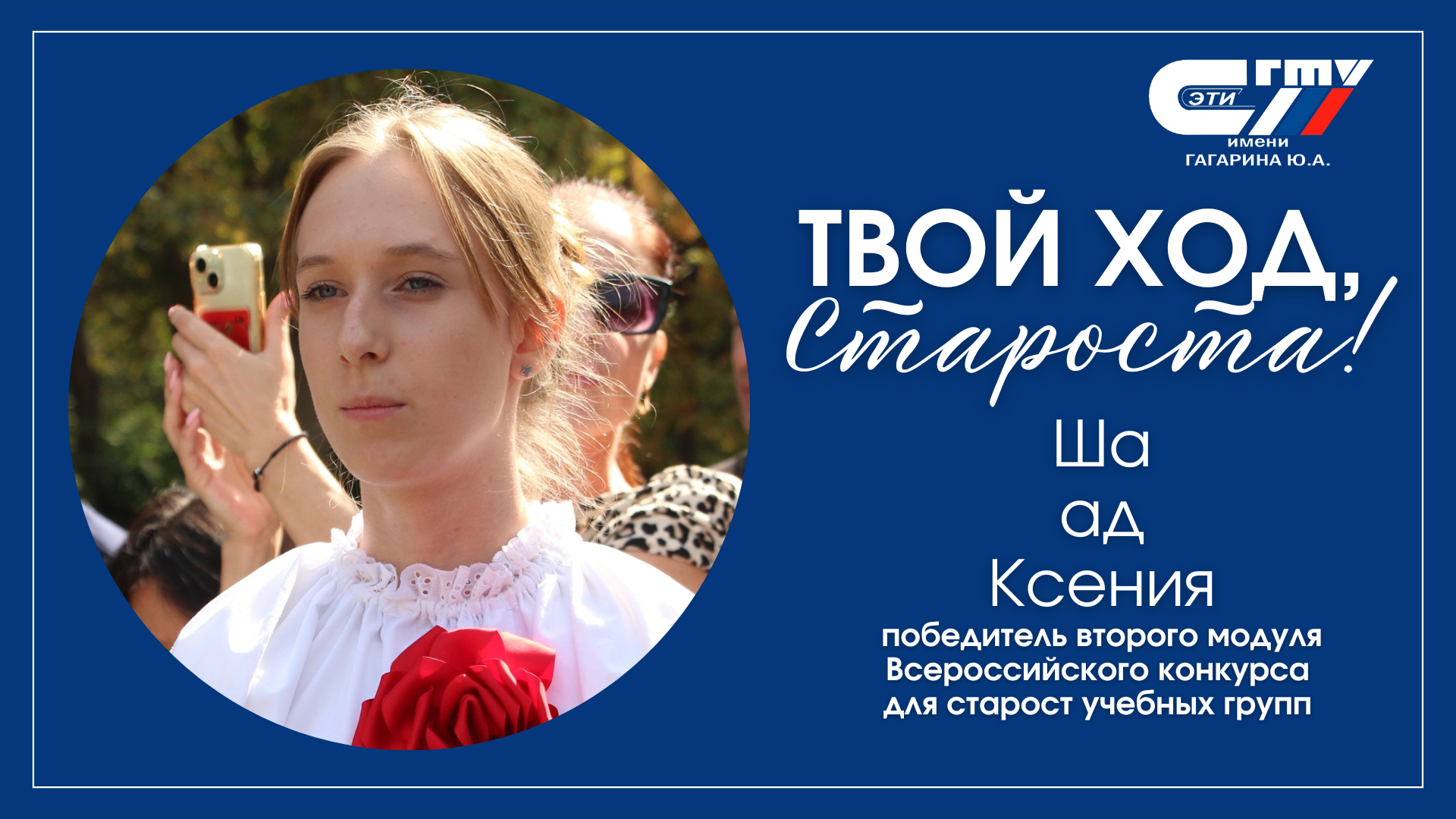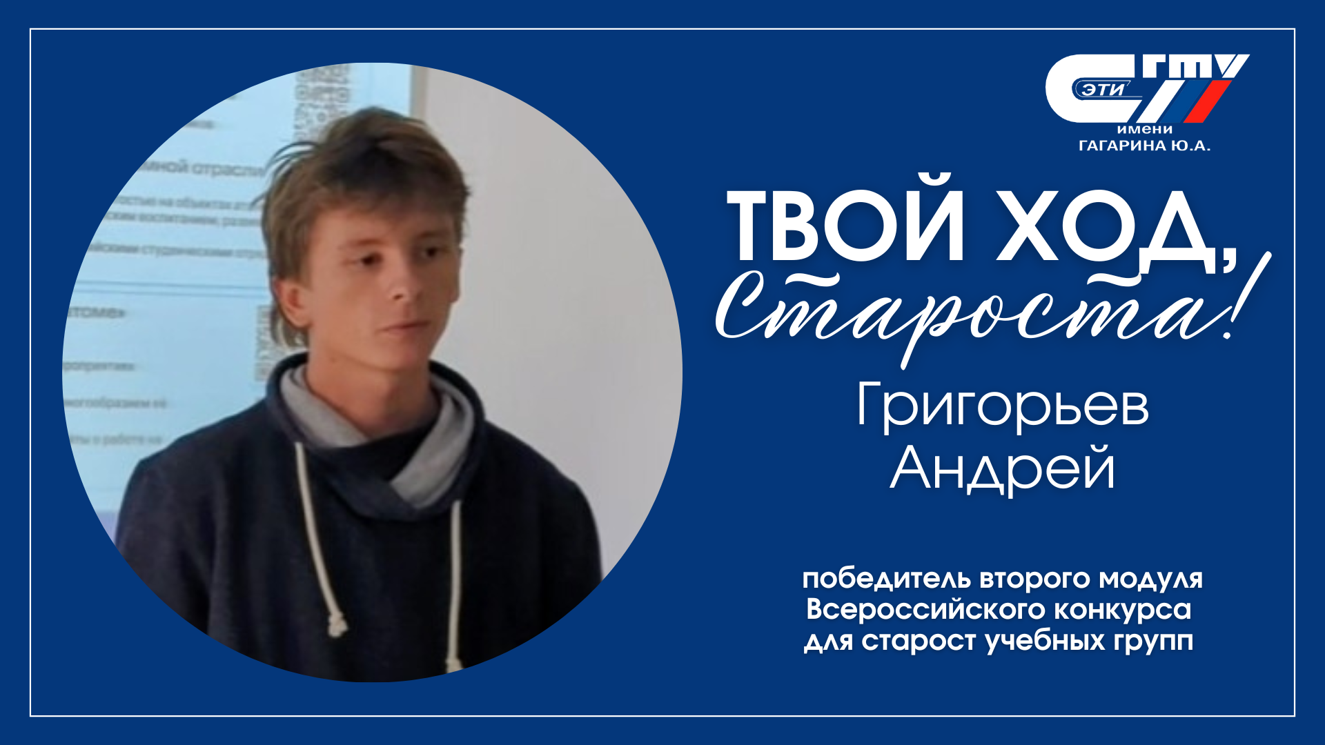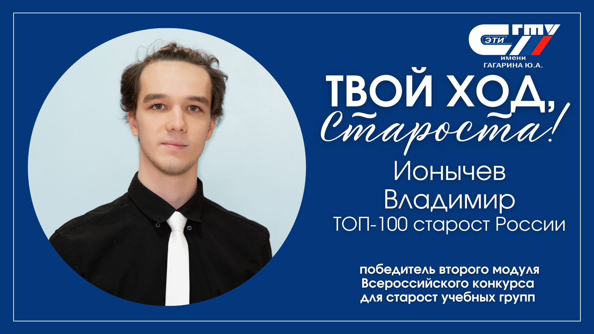 Особо отметим Владимира Ионычева, вошедшего в ТОП-100 лучших старост России и получившего приглашение на Всероссийский студенческий форум проекта «Твой ход» в Москве!