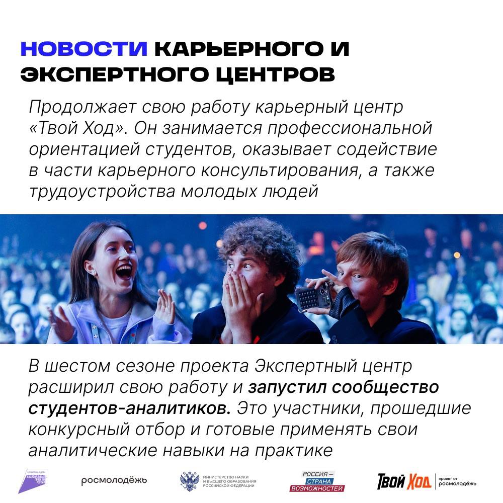 Найти стажировки в команде проекта или у партнёров участникам помогут Карьерный центр «Твой Ход» и Экспертный центр.