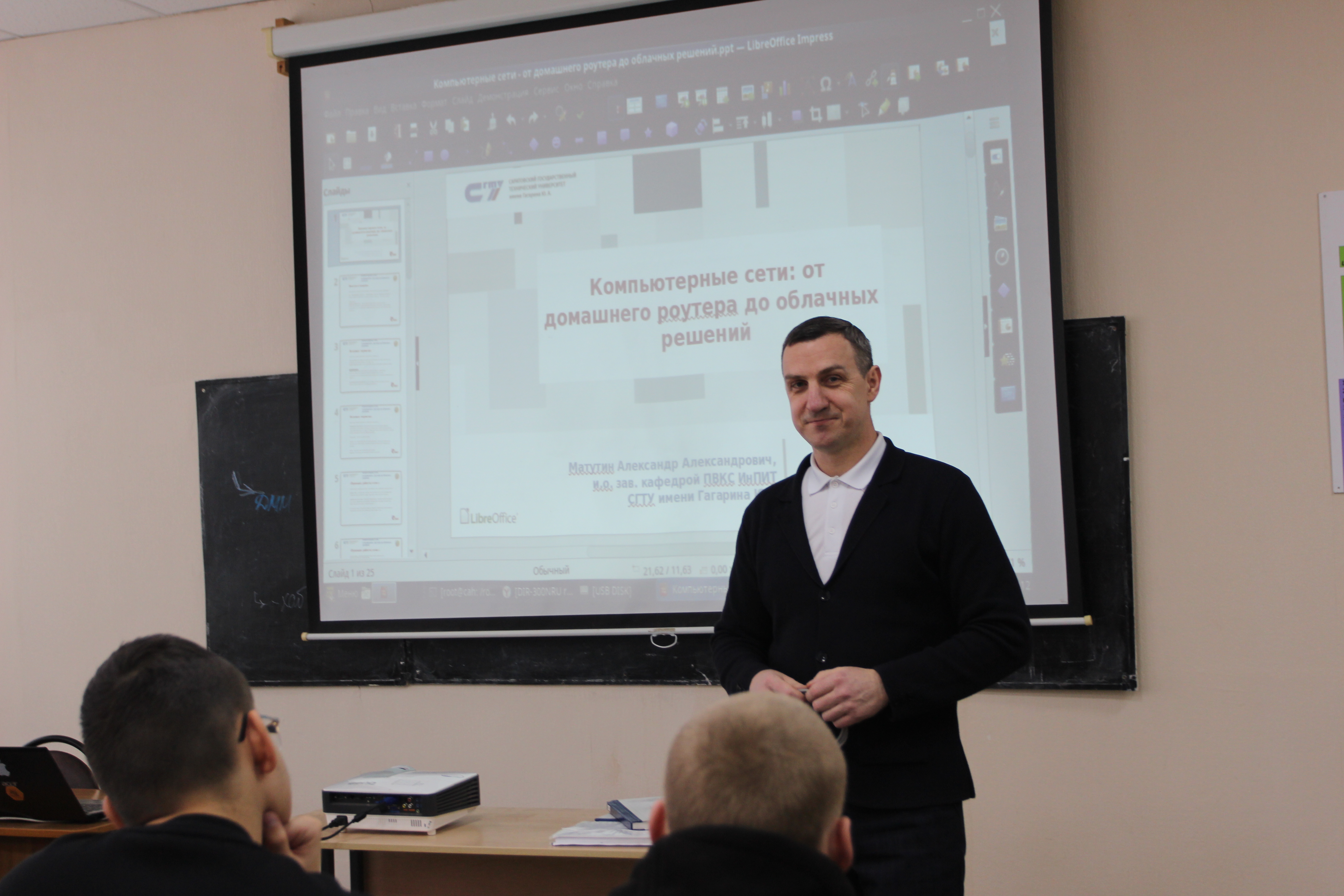 Мастер-класс «Компьютерные сети: от домашнего роутера до облачных решений» провел и.о. заведующего кафедрой «Программное обеспечение вычислительных систем и компьютерных сетей» Александр Матутин. Студентам наглядно показали, как устроены современные сети и какие технологии стоят за облачными сервисами.
