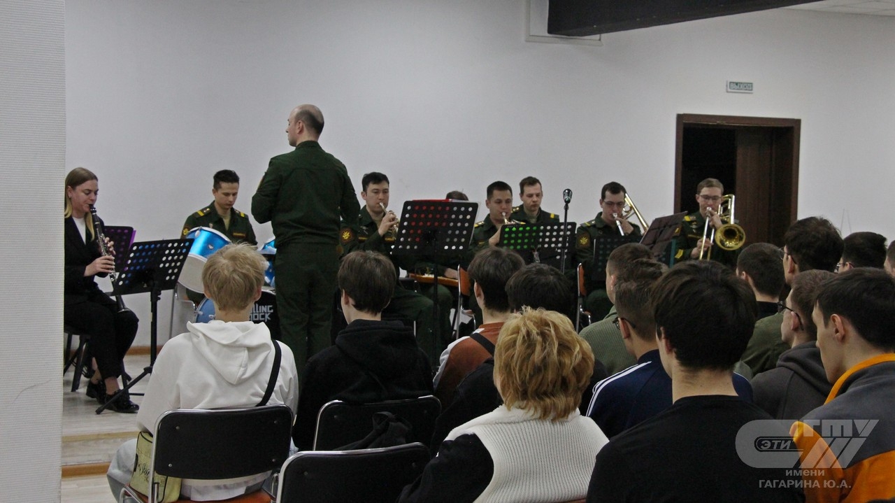 В минувшую пятницу зал Студенческого клуба ЭТИ был наполнен звуками живой музыки: военный оркестр воинской части 25623 поделился со студентами своим творчеством! Этот визит стал настоящим праздником для студентов, преподавателей и сотрудников института!