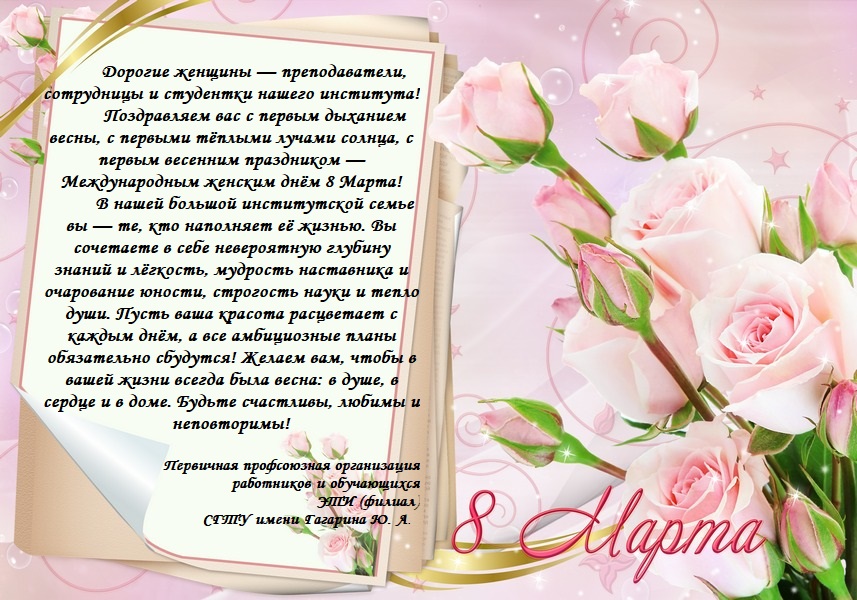 ПОЗДРАВЛЕНИЕ ПРОФСОЮЗА С МЕЖДУНАРОДНЫМ ЖЕНСКИМ ДНЁМ