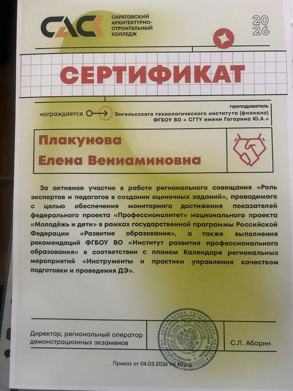 Энгельсский технологический институт (филиал) СГТУ имени Гагарина Ю.А. на совещании представляли преподаватели отдела среднего профессионального и дополнительного образования: Елена Плакунова, Анастасия Сдобнова и Алексей Зотов.