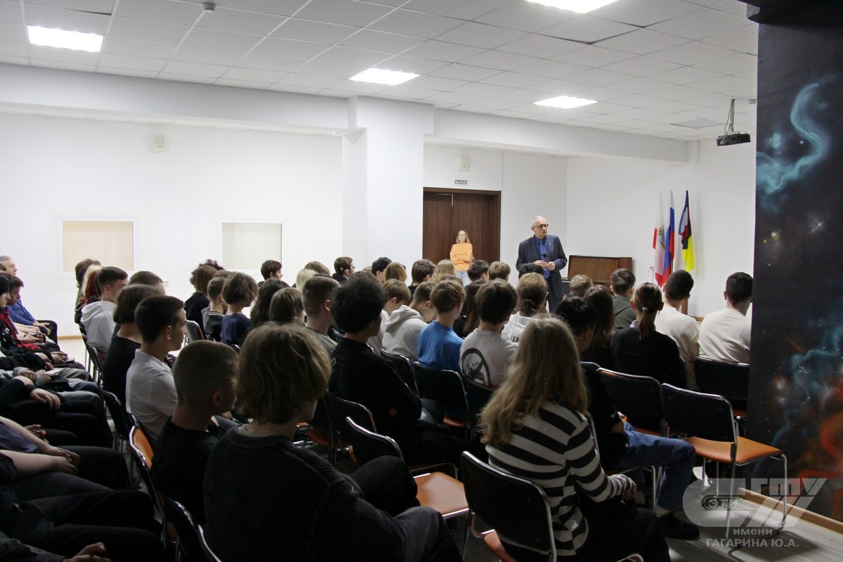 6 апреля 2026 года в нашей стране стартовала первая в истории Неделя космоса. В рамках мероприятий Недели студенты нашего института приняли участие в познавательной программе «Звездные шаги человечества», посвященной 65-летию полета в космос Юрия Алексеевича Гагарина. Спикером встречи стал заслуженный учитель РФ, автор историко-краеведческого сборника «Герман Титов на Саратовской земле», председатель Общественного совета ЭМР – Василий Буцких.