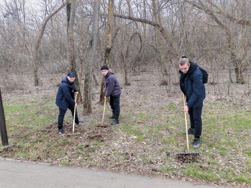 Как обычно, 8 апреля, прихватив грабли и метла, студенты среднего профессионального образования продолжили уборку аллей и дорожек.