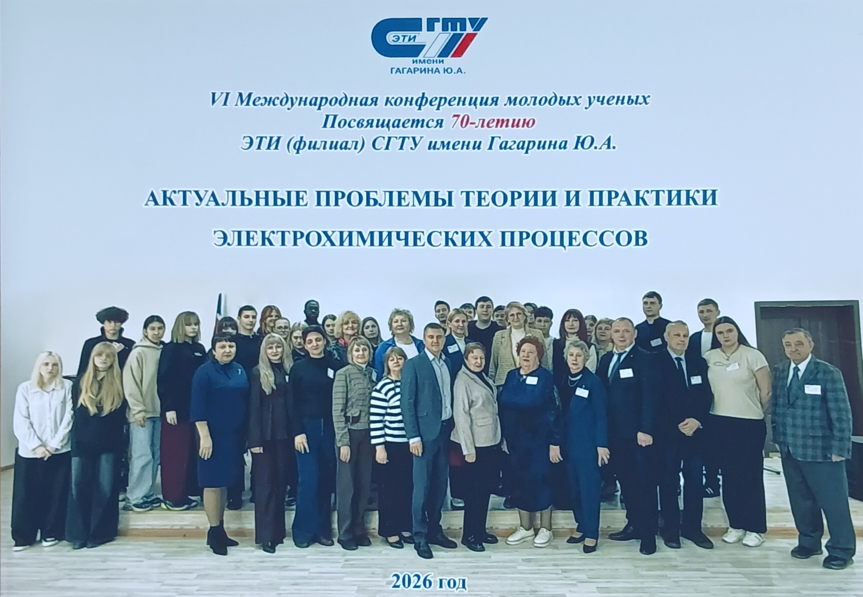 С 22 по 24 апреля 2026 г. в Энгельсском технологическом институте прошла VI Международная конференция молодых ученых «Актуальные проблемы теории и практики электрохимических процессов». Конференция была посвящена 70-летию ЭТИ (филиал) СГТУ имени Гагарина Ю.А.