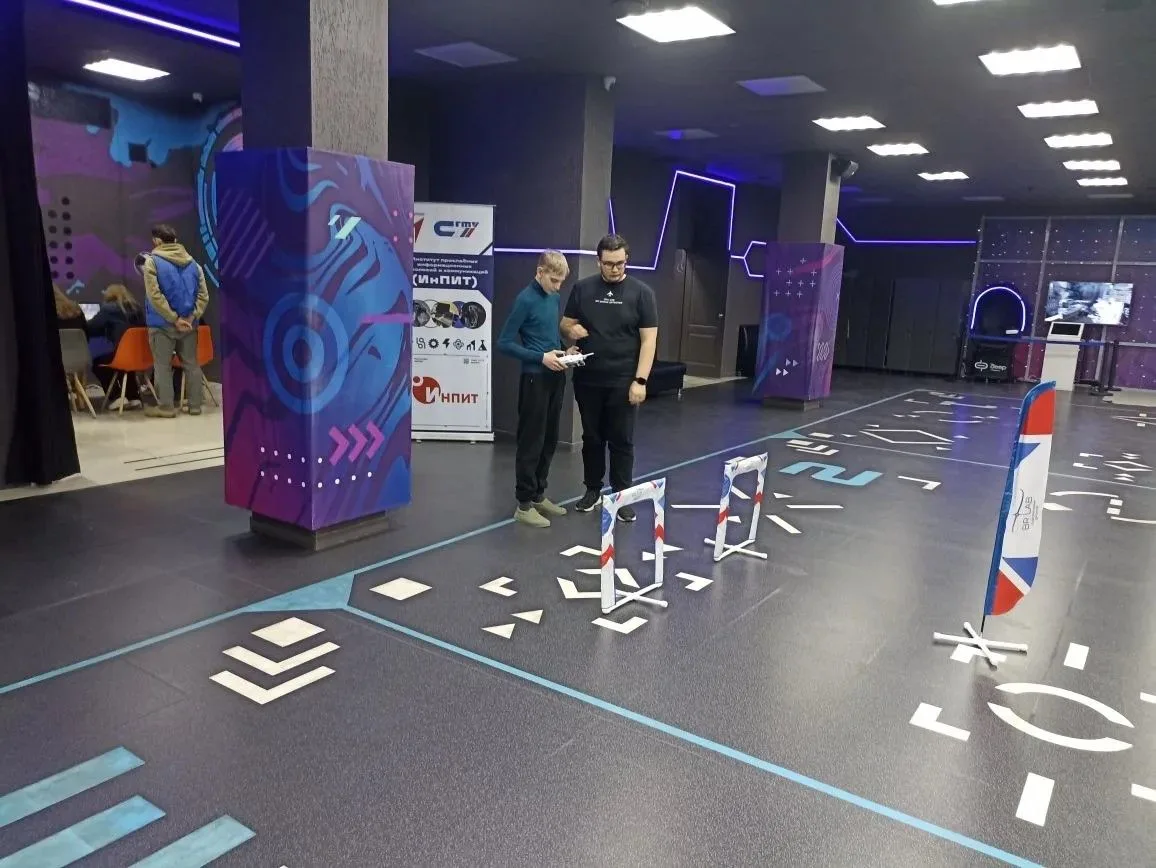Основной соревновательной частью стала авторская фиджитал-игра и зона виртуальных полетов на симуляторах, подготовленные командой ИнПИТ. В свою очередь, преподаватели и студенты ЭТИ выступили соорганизаторами и дополнили программу собственными интерактивами. Особый интерес у школьников вызвало управление реальными физическими дронами — эту зону организовали Владимир Афанаско и Илья Герасимов (ИСП-43).