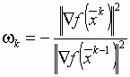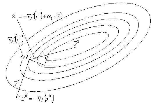 Если исходная функция является квадратичной, то (n+1)-е приближение даст точку экстремума данной функции. Описанный алгоритм с построением ωk по формулам (**) соответствует методу сопряженных градиентов Флетчера-Ривса.