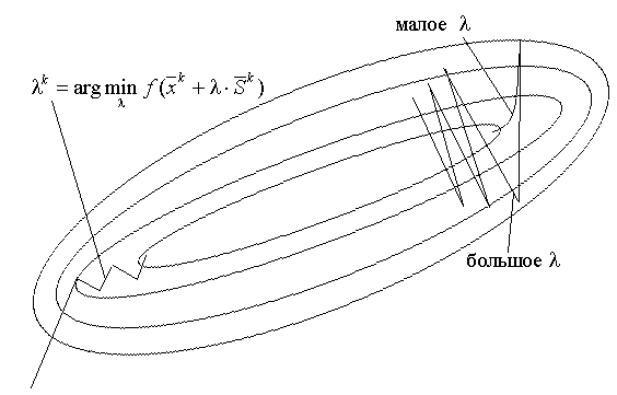 процесс может расходиться. При выборе малых λ траектория спуска будет
