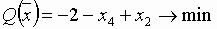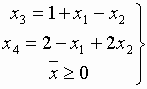 Целевую функцию можно уменьшить за счет увеличения x4. Увеличение x4 приводит к уменьшению только x3. Поэтому вводим в базис переменную x4, а x3 исключаем из базиса. В результате получим следующие выражения для новой системы базисных переменных и целевой функции: