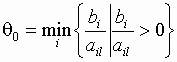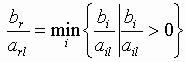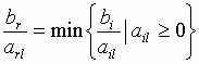 Для выбора разрешающей строки (разрешающего элемента) среди положительных коэффициентов разрешающего столбца выбираем тот (строку), для которого отношение коэффициента в столбце свободных членов к коэффициенту в разрешающем столбце минимально: