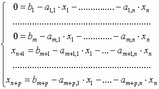 | xm+p | am+p,1 | am+p,2 | …. | am+p,s | …. | am+p,n | bm+p |