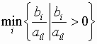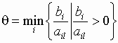 Выбор разрешающего элемента. Если при поиске минимума в строке целевой функции есть коэффициенты больше нуля, то выбираем столбец с положительным коэффициентом в строке целевой функции в качестве разрешающего. Пусть это столбец с номером l.