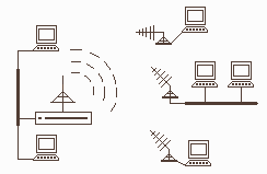 Другой важной областью применения беспроводных сетей является организация связи между удалёнными сегментами локальных сетей при отсутствии инфраструктуры передачи данных (кабельных сетей общего доступа, высококачественных телефонных линий и др.), что типично для нашей страны. В этом случае для наведения беспроводных мостов между двумя удалёнными сегментами используются радиомосты с антенной направленного типа.