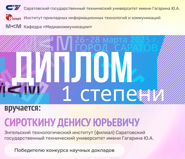 26 - 27 марта 2025 года на базе Института прикладных информационных технологий и коммуникаций СГТУ имени Гагарина Ю.А. проходила IV Всероссийская научно-практическая конференция с международным участием «Медиа в информационном обществе: эффекты, возможности, риски».